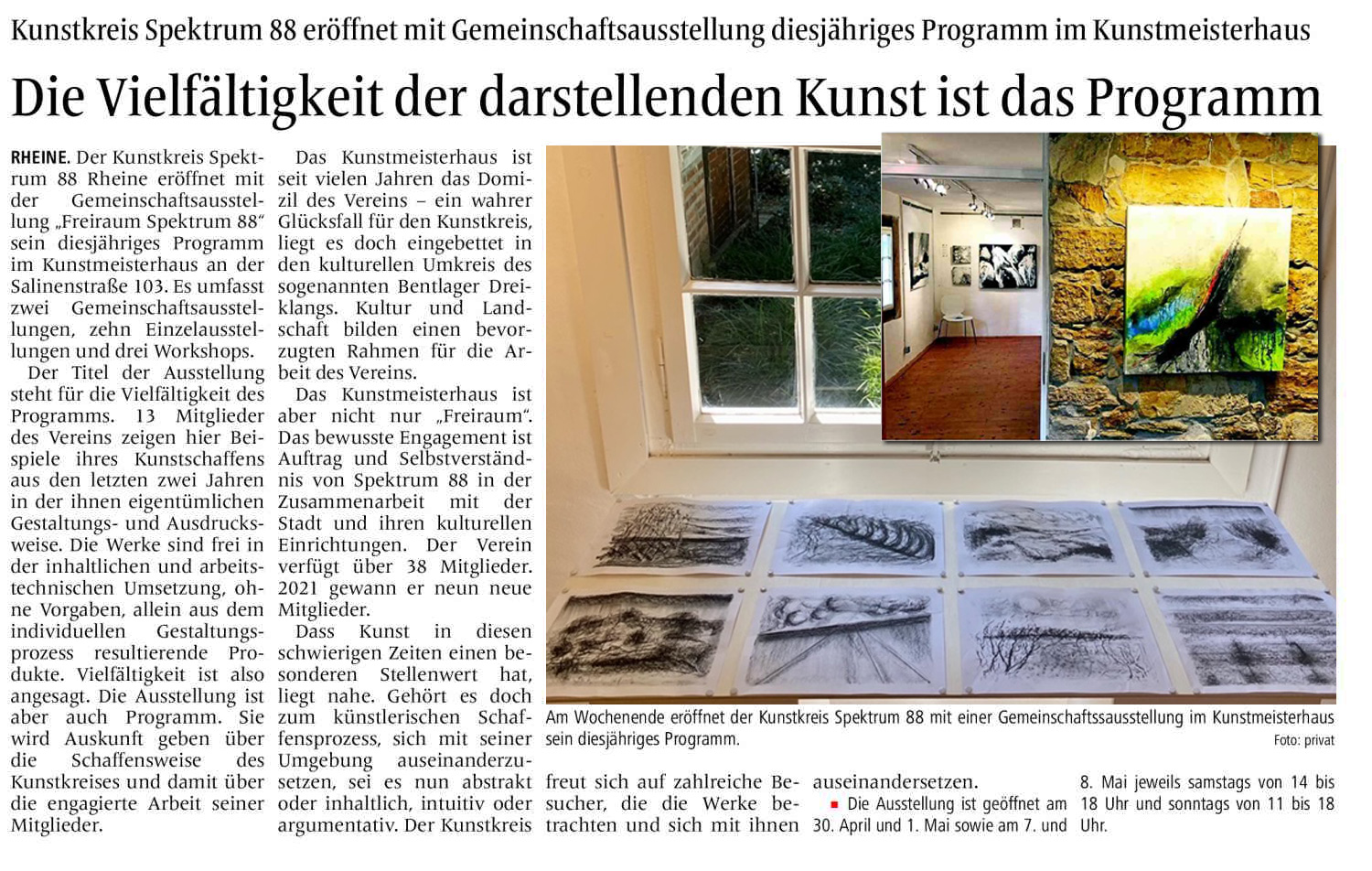 2022: „FREIRAUM Spektrum 88“ Kunstmeisterhaus, Rheine