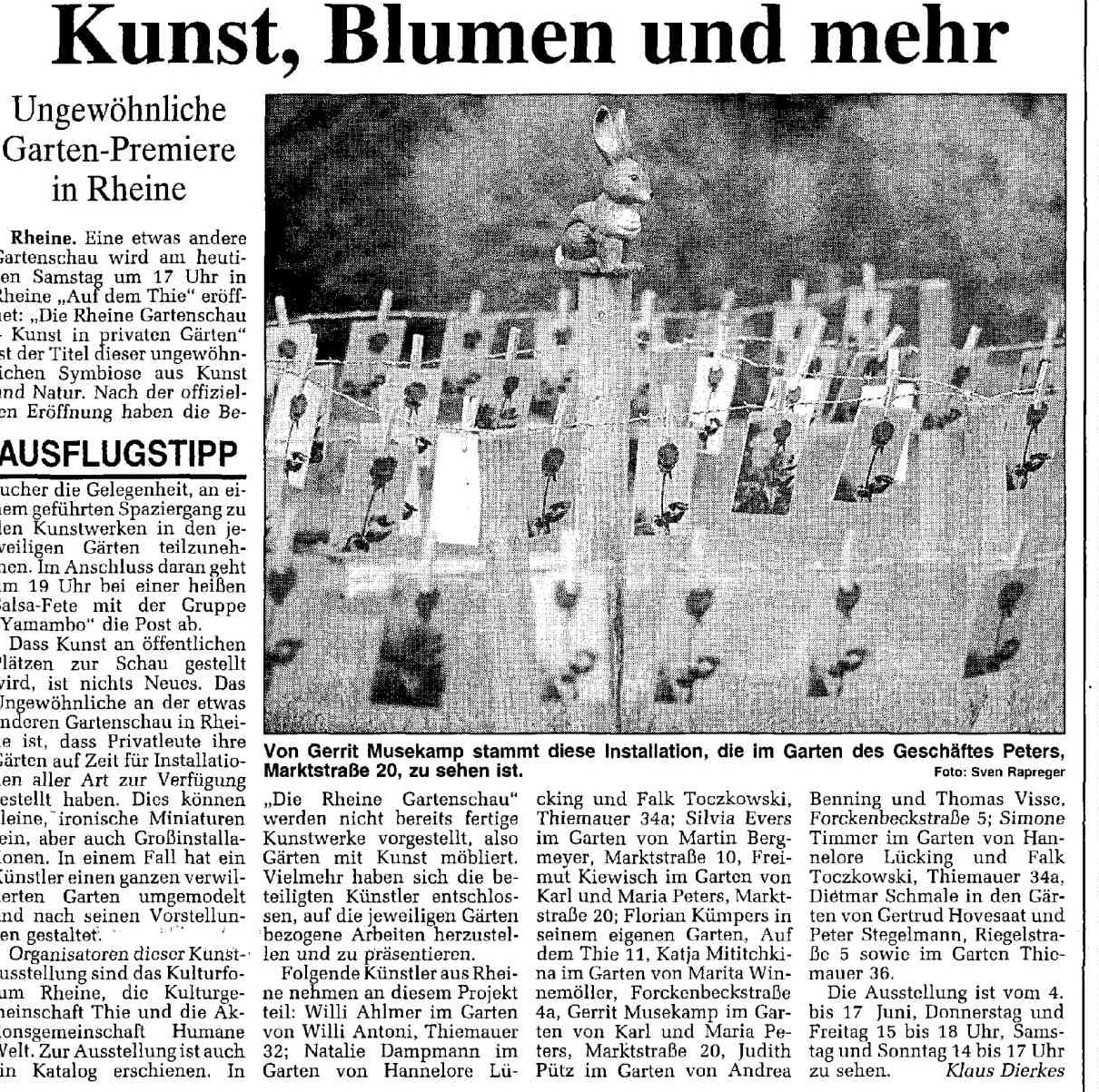 2000: „Die Rheine Gartenschau: Kunst in privaten Gärten“, Kulturforum Rheine